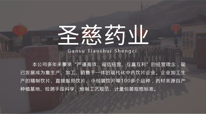 甘肅天水圣慈藥業(yè)有限公司成立于2016年11月8日,注冊(cè)資本500萬元,位于甘肅省天水市張川回族自治縣張川鎮(zhèn)中城南路,本公司多年秉承“嚴(yán)謹(jǐn)高效、誠信經(jīng)營、互贏互利”的經(jīng)營理念,現(xiàn)已發(fā)展成為集生產(chǎn)、加工、銷售于一體的現(xiàn)代化中藥飲片企業(yè)。企業(yè)加工生產(chǎn)的精制飲片、直接服用飲片、小包裝飲片等100多個(gè)品種,藥材來源自產(chǎn)種植基地、檢測手段科學(xué)、炮制工藝規(guī)范、計(jì)量包裝規(guī)格標(biāo)準(zhǔn)。